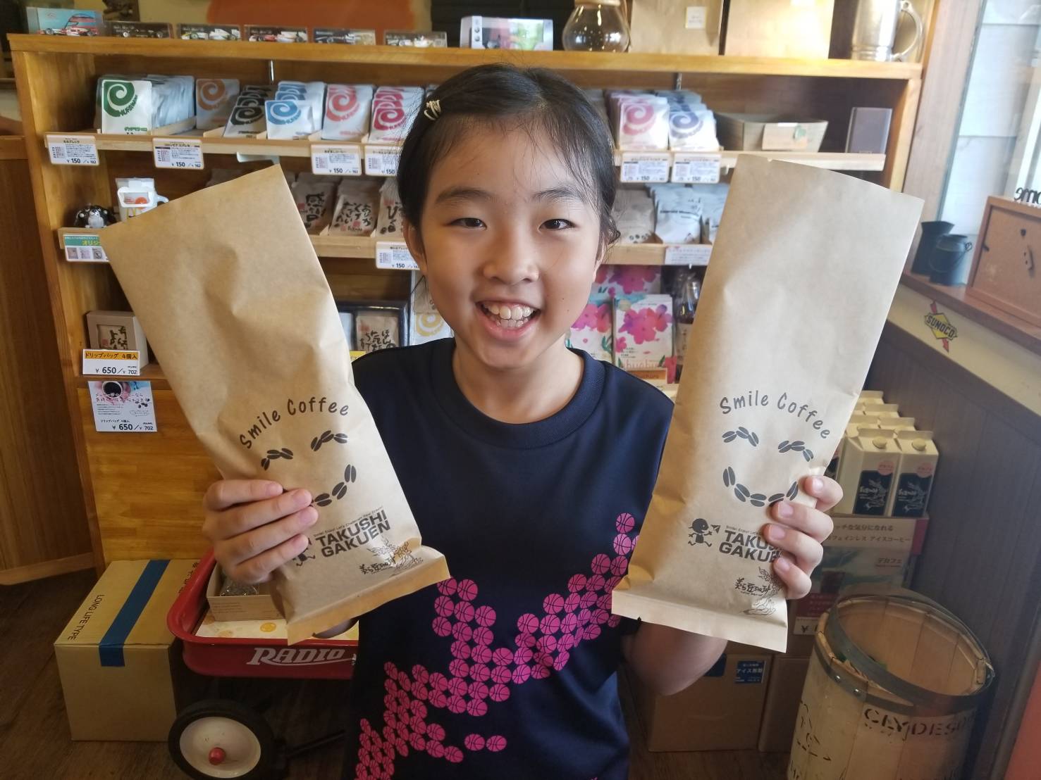 たくし学園では、コーヒー農園と養蜂場を通して、自然と向き合う体験を大切にしています。収穫したコーヒー豆やはちみつを使い、「SMILE KITCHEN」のキッチンカーで商品を販売。コーヒーやスイーツを通じて、地域に笑顔を届けています。